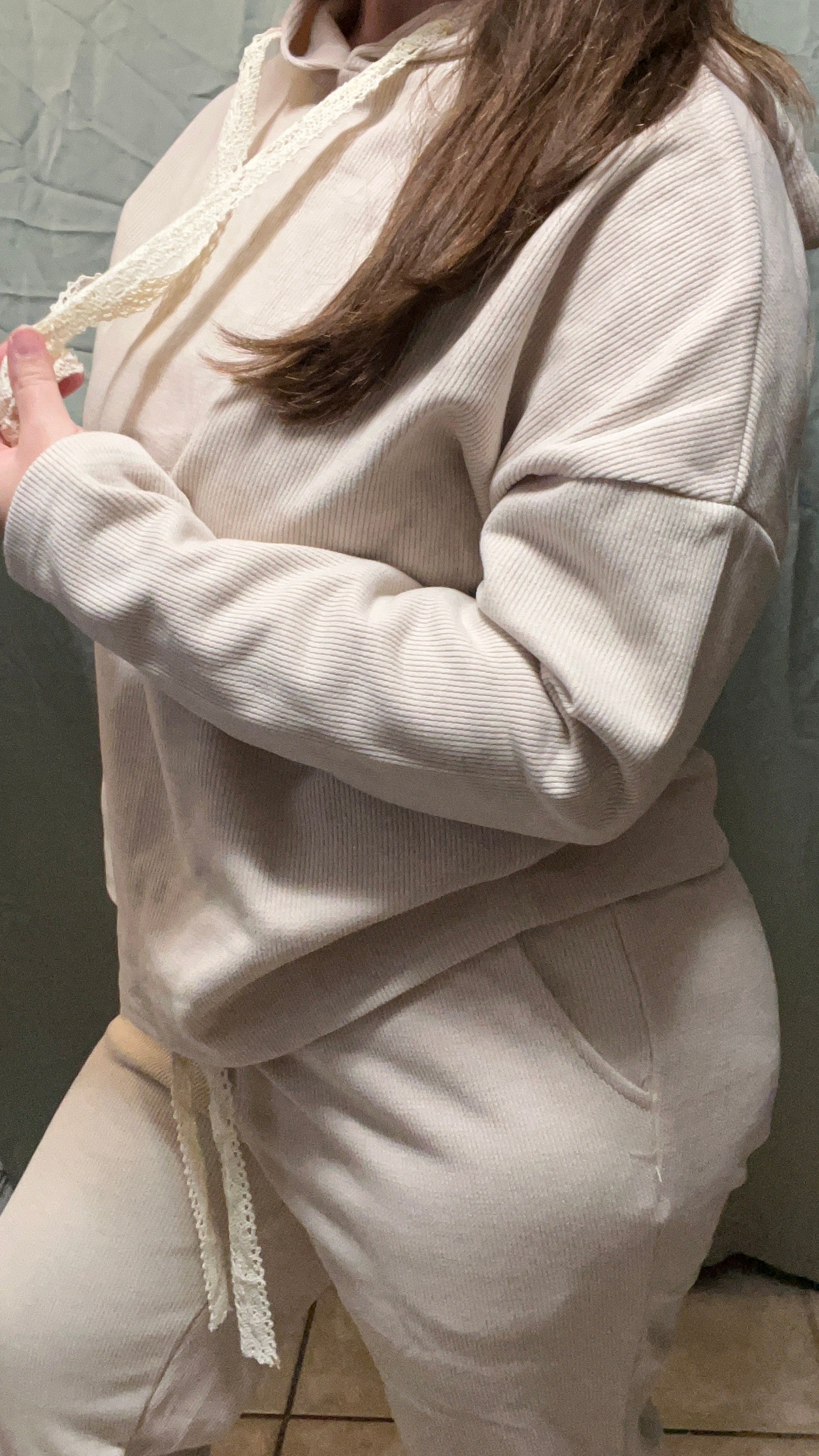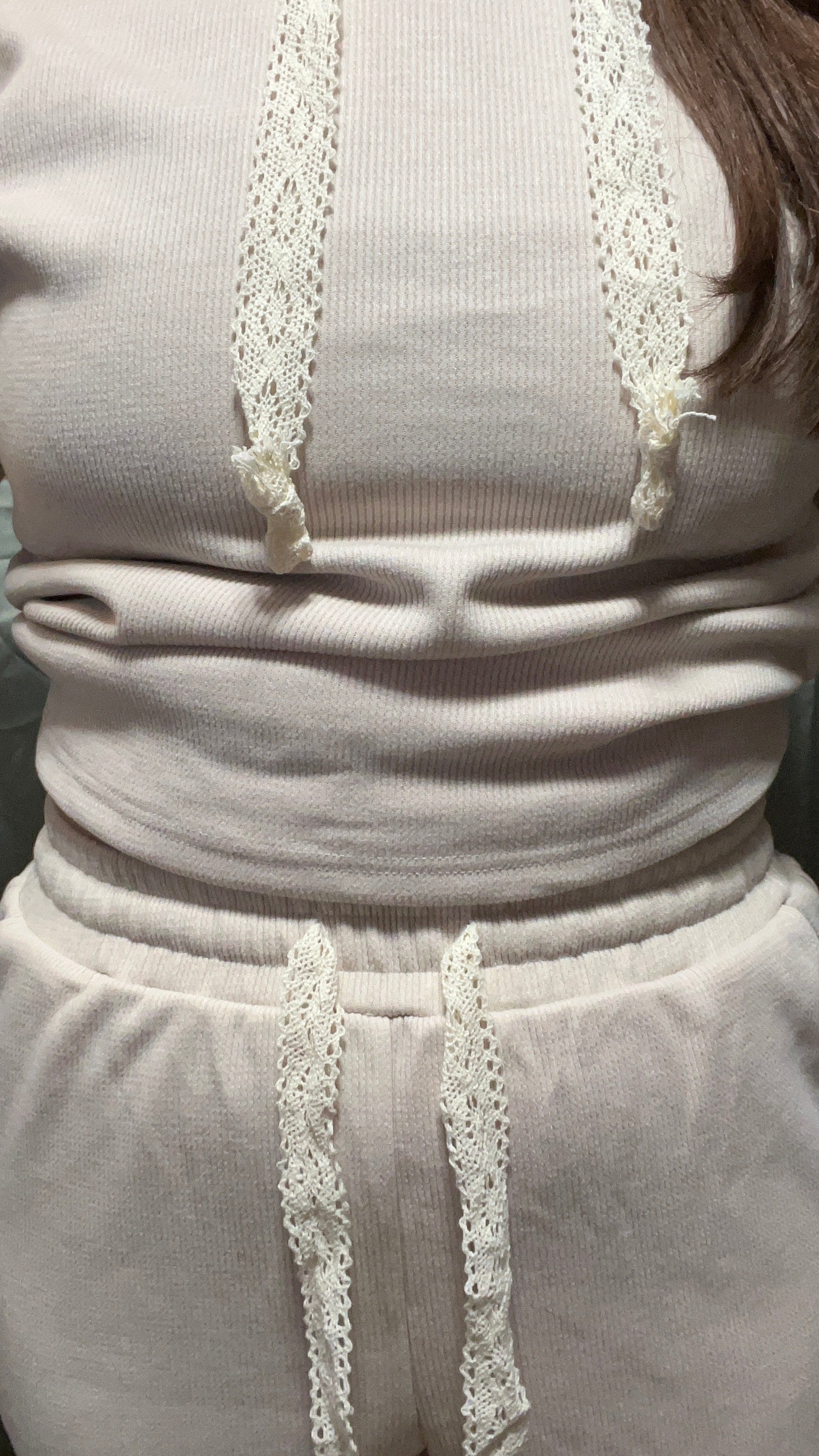 The Lace Comfort Set is designed for slow mornings, cozy evenings, and everything in between. Made from a soft, breathable fabric with a relaxed fit, this matching set is elevated by delicate lace-style drawstrings, adding a subtle feminine detail to an everyday essential.